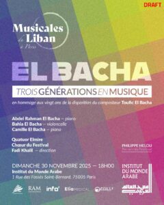 🇫🇷 LES MUSICALES DU LIBAN : ABDEL RAHMAN EL BACHA – TROIS GÉNÉRATIONS EN MUSIQUE Musique MUSIQUEEVENTSFRANCEFRANCE NOV 2 30/11/2025 de 18:00 à 20:00