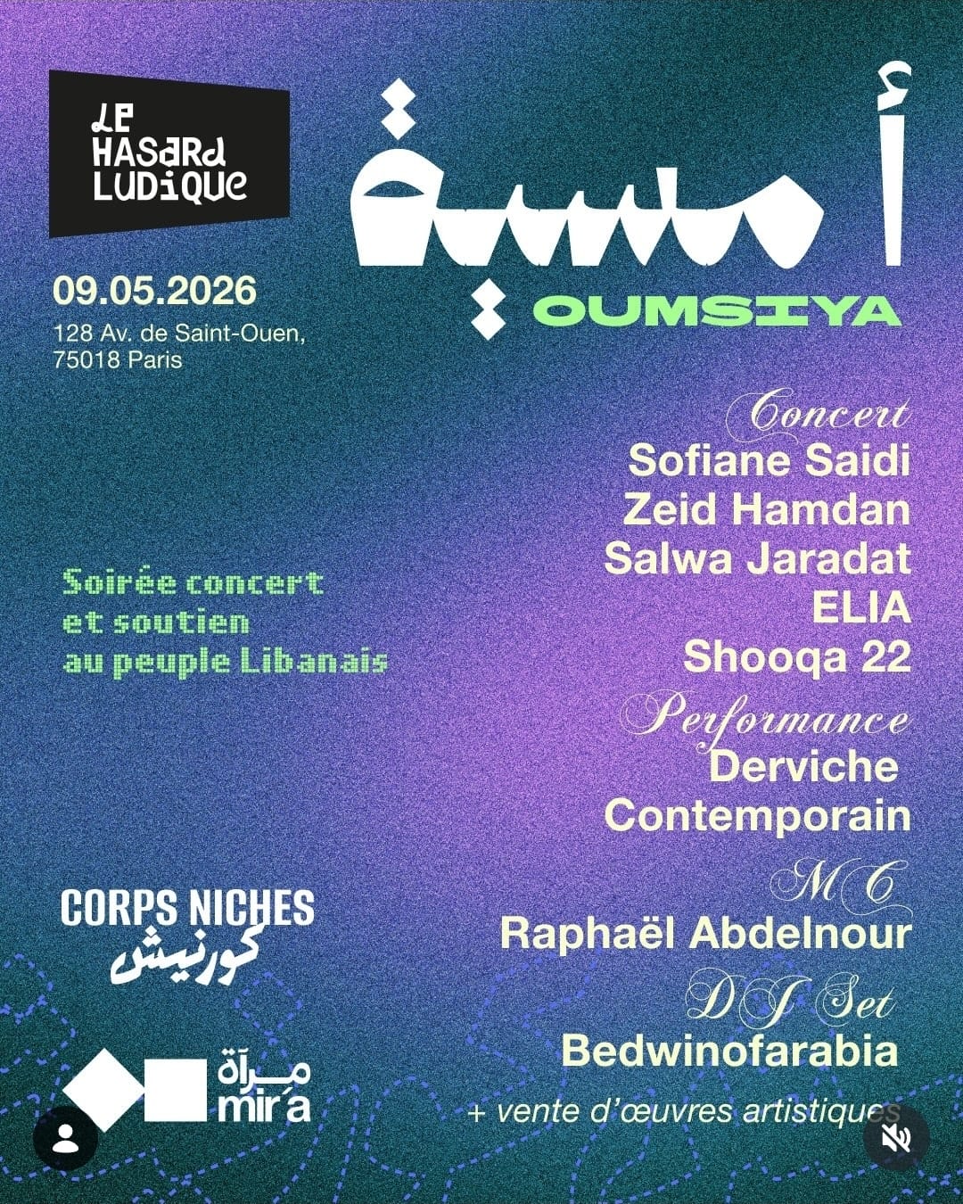 🇫🇷 OUMSIYA — SOIRÉE SOLIDAIRE POUR LE LIBAN Musique MUSIQUEFRANCEFRANCEFRANCE MAI 2 09/05/2026 de 20:00 à 23:00-Agenda culturel