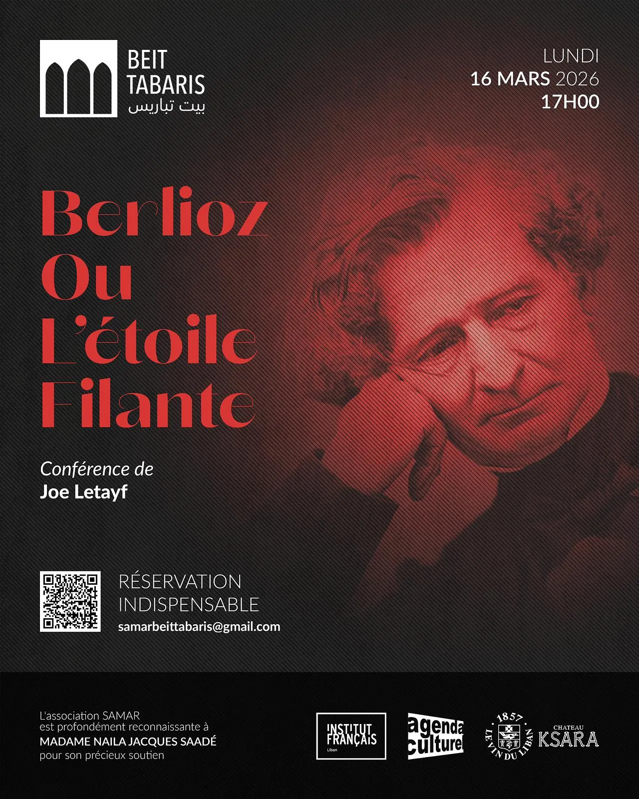 BERLIOZ OU L’ÉTOILE FILANTE Conférence CONFERENCEEVENTSEVENTS IN LEBANON Vernissage: 16/03/2027 à 17:0016/03/2026 de 17:00 à 19:00