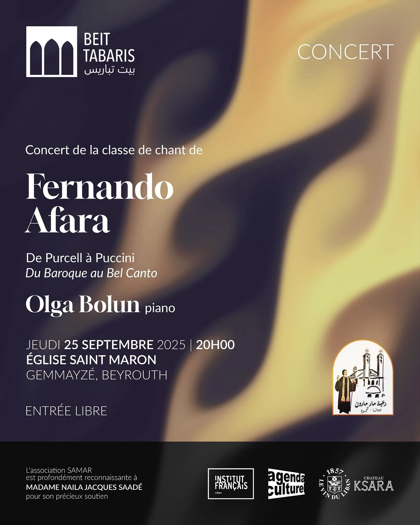Fernando Afara avec Olga Bohn au piano à l’initiative de Beit Tabaris donneront 1 concert de la classe de chant-Agenda culturel