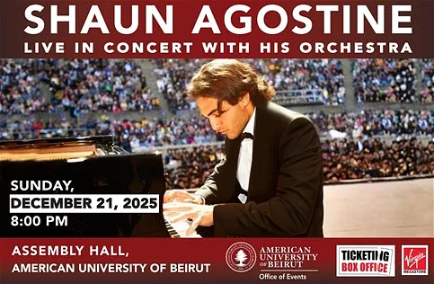 As part of his ongoing world tour, which has taken him to major international stages—including standout performances, film festivals, awards, fashion-house collaborations with brands such as Zegna, and sharing the stage with industry legends like Plácido Domingo at the Dubai Opera, the Vienna Strauss Orchestra, Raul Di Blasio, and the list goes on—Shaun Agostine now brings his music to Lebanon for a highly anticipated concert at the American University of Beirut’s Assembly Hall.